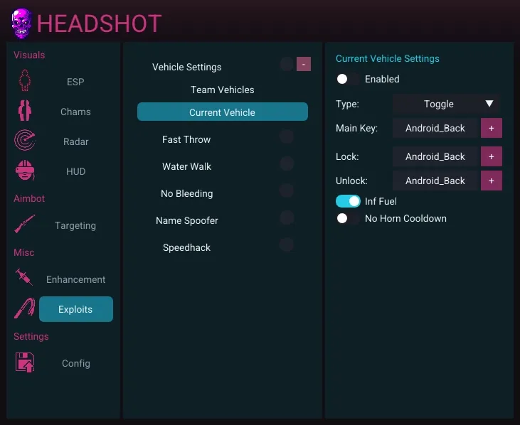 | Vehicle Settings (Inf Fuel, Unlock/Lock) | ✅ |